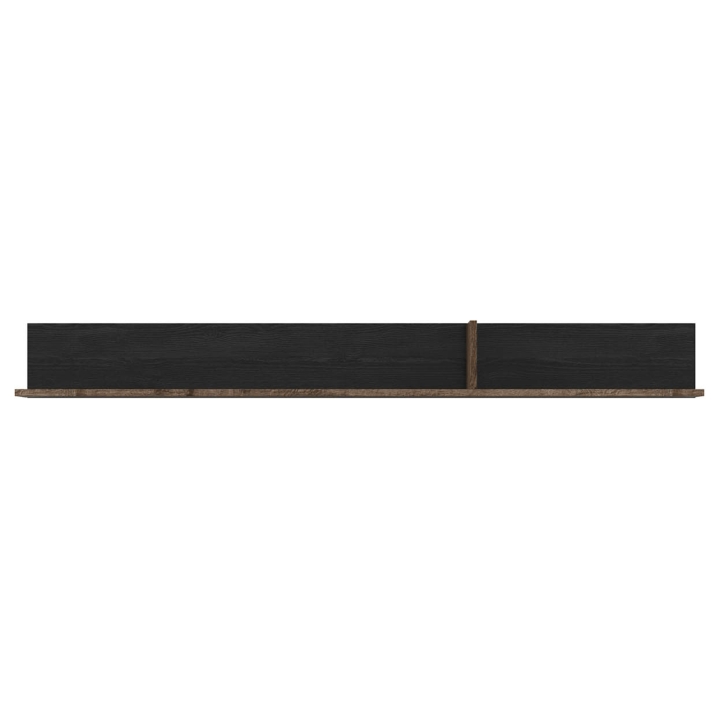 The Kassel wall shelf by Black Red White is a minimalist accessory measuring 150 × 17 × 19.5 cm, which will work well in both the living room and bedroom. Made of furniture board, it combines two contrasting colours - warm monaster oak and deep black oak. The dark-coloured back panel provides an elegant background for decorations, photo frames or plants. The simple form with no visible fastenings fits well into modern and loft arrangements. Thanks to its shallow depth (19.5 cm), the shelf does not dominate the space, and its width of 150 cm makes it possible to display a larger number of objects. It can also serve as a practical element above a RTV cabinet or chest of drawers. The wood structure adds cosiness and visual warmth to the interior. The shelf weighs 6.05 kg, which ensures stability when assembled correctly. The Kassel model is a complement to the collection, which allows you to create a coherent and well-thought-out wall composition without having to place large furniture.