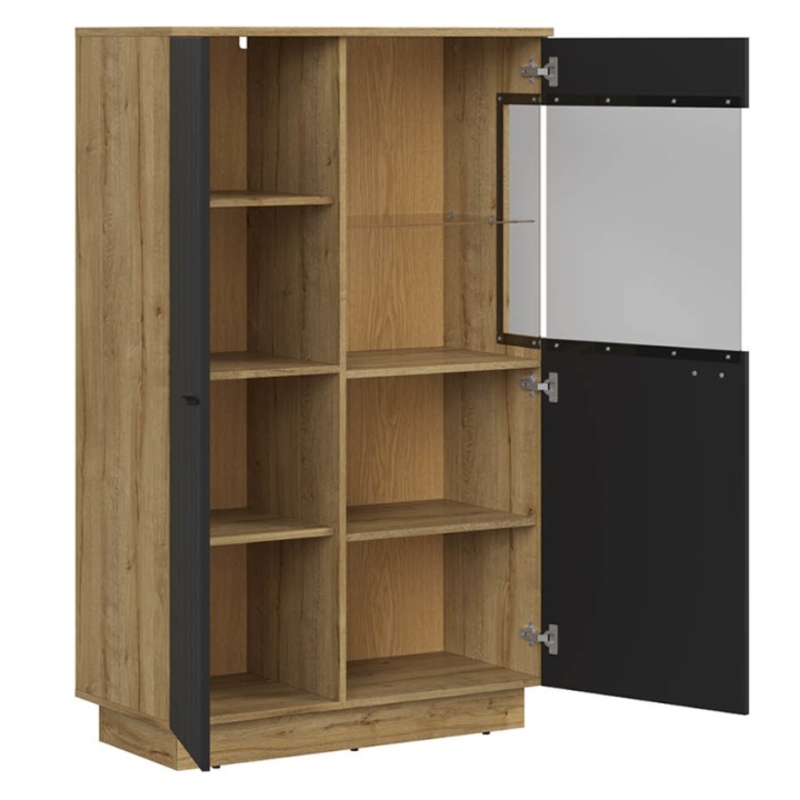 The Zenda 91 cm display cabinet is a piece of furniture that finds its way into a variety of settings - modern, industrial, loft and even minimalist. The harmonious combination of the warm shade of Waterford oak with matt black brings contrast, dynamism and elegance to the interior. It is a choice that will enhance the visual value of the space and make it easier to organise.