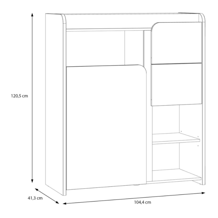 The Hoa 104 cm chest of drawers is a piece of furniture designed for youth spaces and modern interiors where practical storage and fresh design are both important. With dimensions of 104.4 × 120.5 × 41.3 cm, it will easily fit into a children's room, study or smaller bedroom, offering optimal space without overwhelming the space.