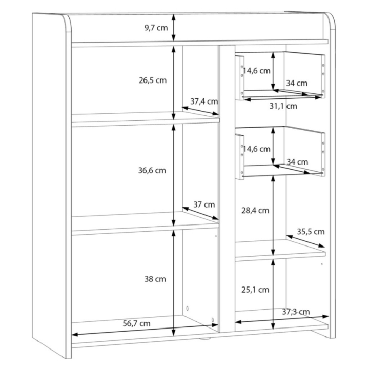 Inside, the chest of drawers features a two-segment storage layout - on one side a capacious space behind a full door front, ideal for boxes, binders and even folded clothes. On the other side, two wide drawers are located where you can easily store linen, accessories or art supplies. Everything is housed in a compact, stable unit that will stand up to heavy use.