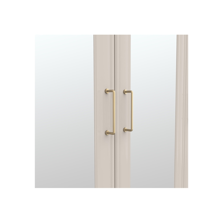 The Anga four-door wardrobe with a width of 201 cm is for those who want to combine style with a large capacity. Its form is reminiscent of Scandinavian simplicity, and the delicate kashmir colour scheme will blend in perfectly with bright and calm bedroom interiors. The model is distinguished by a centrally placed mirror on two fronts, which not only fulfils a practical function, but also visually enlarges the space and reflects light.
