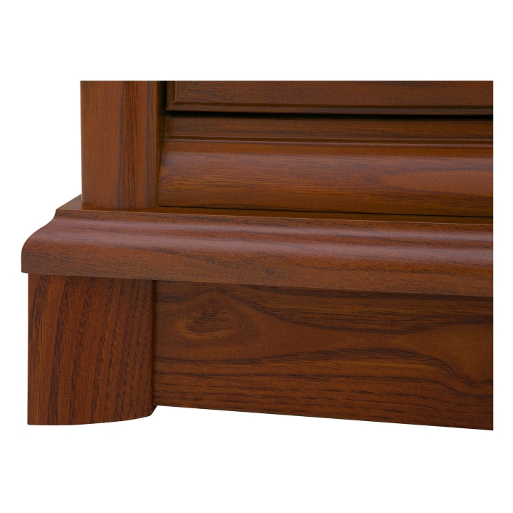The front of the cabinet is mounted on brand-name hinges that guarantee precise movement with no creaking or play. This solution proves its worth both in everyday use and in the case of prolonged, intensive use of the furniture. The chestnut-coloured veneer faithfully reproduces the grain and structure of natural wood - with a subtle sheen, variation in texture and depth of colour that changes depending on the lighting in the room.