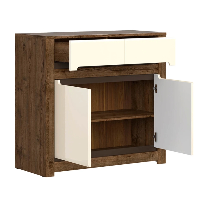 The Ruso 2D2S chest of drawers by Black Red White is a perfect combination of modern design and functionality. Made in a fashionable colour combination of april oak with graphite elements, it fits perfectly into a variety of arrangements - from the living room to the bedroom. This model is equipped with two capacious drawers and two lockable cabinets, which provide ample space for storing essential items. The solid construction and careful workmanship guarantee durability and aesthetics for years to come. The simple yet elegant style of the Ruso 2D2S chest of drawers makes the furniture not only fulfil its practical purpose, but also become an important decorative element of the interior.