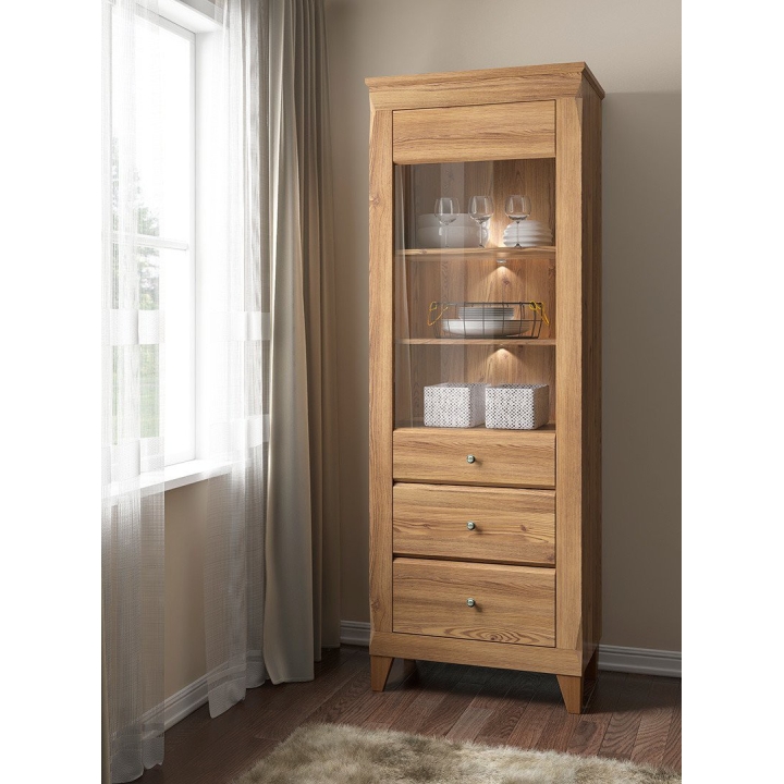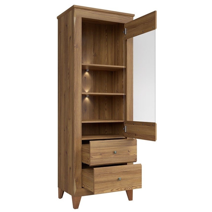 The Bergen showcase from the Bergen collection by Black Red White. "Witryna Bergen" is a modern and stylish piece of furniture that will bring elegance and functionality to your interior. Made from the highest quality materials, it ensures durability and solid construction, which guarantees long-lasting use. A characteristic element of the "Bergen Cabinet" is its minimalist design. Clean lines, geometric shapes and delicate finishes give the piece of furniture a modern look, which will perfectly harmonise with various interior design styles. "The Bergen showcase is perfect for a variety of rooms, such as the living room, dining room, kitchen or hallway. It is a practical place to store and display decorations that will add character to your interior.