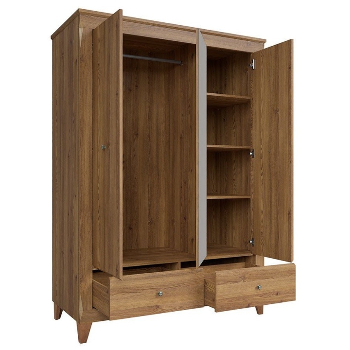 Wardrobe with mirror from the Bergen collection by Black Red White. "The Bergen wardrobe is an impressive and practical piece of furniture that will provide you with plenty of storage space and organisation for your wardrobe. Made from the highest quality materials, this wardrobe guarantees durability and solid construction. The distinctive feature of the 'Bergen Wardrobe' is its capacity and functionality. Designed to make optimum use of space, it offers plenty of shelves, drawers and clothes bars to organise all your belongings. The wardrobe has a clever internal organisation that allows you to segregate your clothes, shoes and accessories, making it easy to keep your wardrobe tidy. The huge capacity and careful craftsmanship of the 'Bergen Wardrobe' make it ideal for those who value functionality and aesthetics in their bedroom. This piece of furniture will provide you with space organisation and an elegant look for your wardrobe.