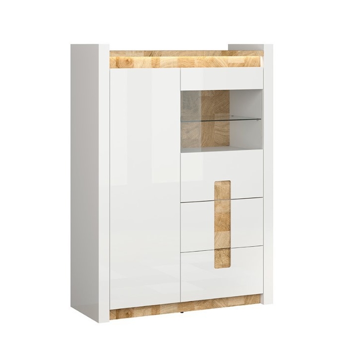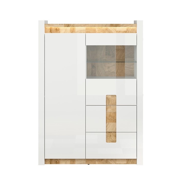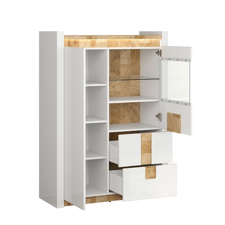 Alameda showcase by Black Red White is a piece of furniture, , which allows you to display and store a variety of items in the room. This charming showcase, made of high quality materials, combines functionality, aesthetics and stylish design. Its glazed fronts make the display cabinet the perfect place to showcase your treasured items, decorations, china, glasses or any other collection you wish to display, and LED lighting placed under the top to highlight the furniture's modern design. In this way, your favourite items can become a decoration of your interior, adding character and personal style. Inside the display cabinet, there are shelves or drawers to store a variety of things. You can arrange books, documents, photos or any other items you want to keep tidy, while still having easy access to them.