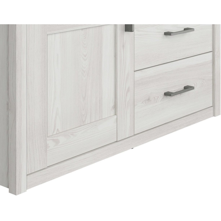 The fronts are decorated with frame strips which strengthen the line of the furniture and emphasise its decorative character. The whole is complemented by metal handles in the shade of old iron - durable, comfortable and pleasant to the touch. Thanks to them, drawers and doors open smoothly, without resistance, which is particularly important in a heavily used children's room.