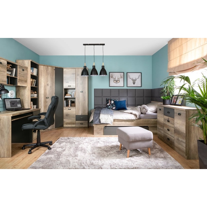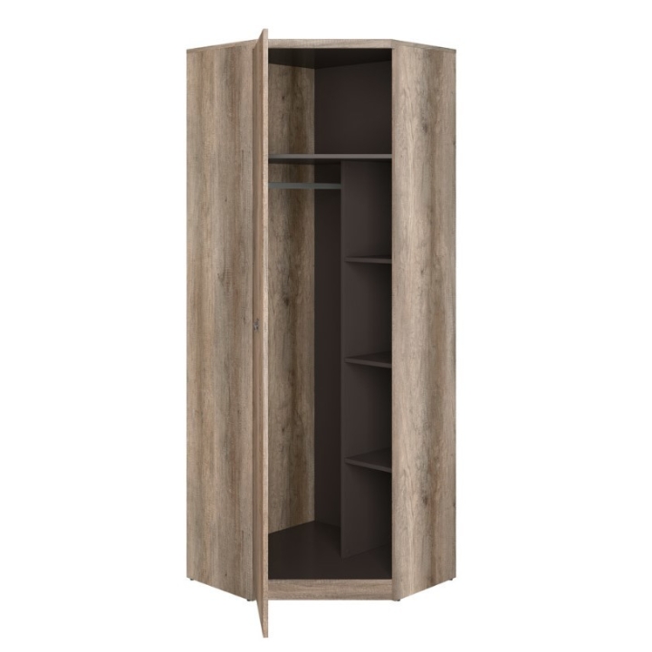 A corner wardrobe from the Malcolm collection by Black Red White. The Malcolm corner wardrobe is characterised by a solid construction and high quality workmanship, which ensures durability and strength. It is designed specifically for corners, making effective use of the space in the room. It is available in a variety of designs, shapes and finishes, allowing you to match your interior style and preferences. With its functionality, the Malcolm corner wardrobe offers various storage solutions such as hanger rods, shelves and drawers to organise clothes, accessories and other items. It makes use of the corner space in the room, maximising the available space.