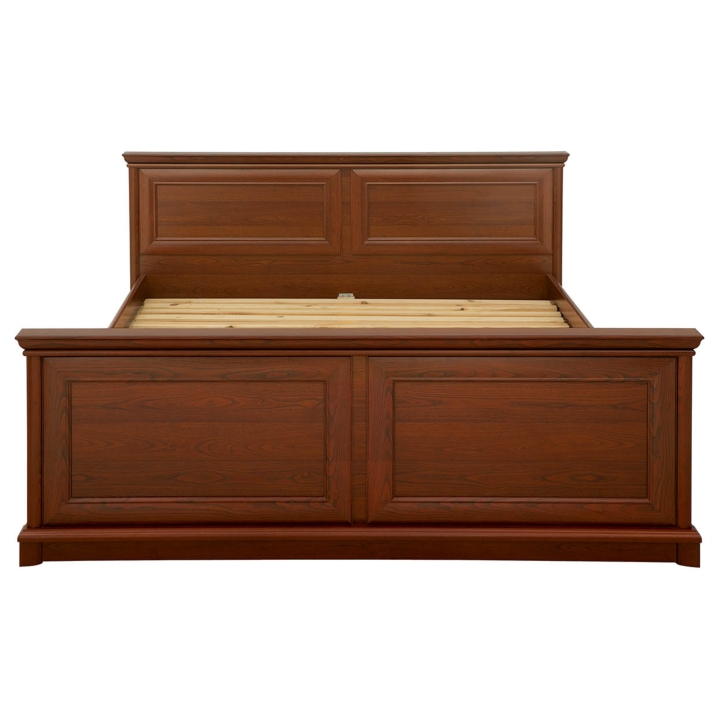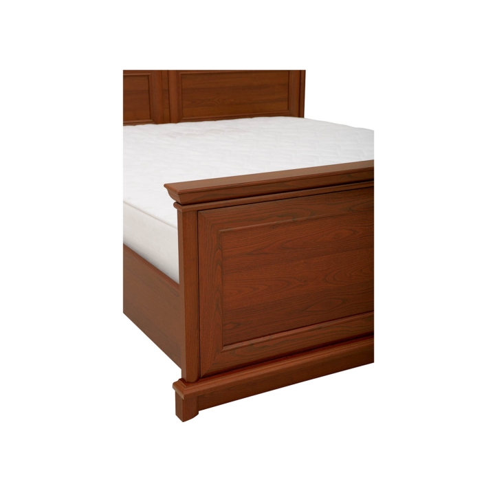 The carved finials on the headboard and front frame emphasise the style of the furniture and give it a timeless feel. The line of the bed is simple, but full of elegant references to classic patterns. It blends well with other furniture from the Kent collection: bedside tables, wardrobe, chest of drawers or mirror. Together they create a coherent bedroom arrangement where form follows function.