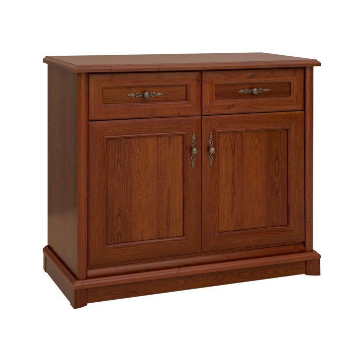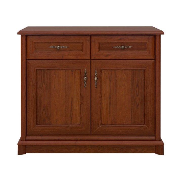 At the top of the furniture are two drawers, ideal for documents, accessories, table textiles or everyday items. Below that are two lockable fronts, behind which is a capacious shelf - ideal for storing larger items: dishes, books, spare towels or small electronic equipment.