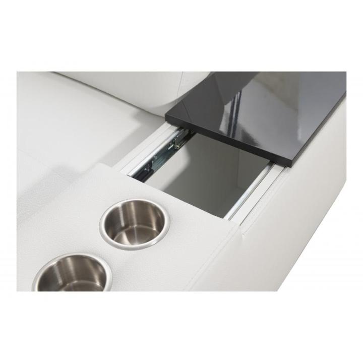A wide selection of accessories is available, including cup holders in black or silver, as well as various shelf finishes: high-gloss lacquered laminate in white or black, laminate in oak lancelot, silver venge or satin matte black, and wooden versions in black, white, alder, beech or venge. The corner sofa can be fully upholstered in any chosen fabric. Thanks to the advanced configurator, it is possible to adjust the upholstery to individual aesthetic preferences. Dozens of fabrics with different textures, colours and properties allow the model to be seamlessly integrated into any interior design concept. The furniture offers not only comfort but also full visual customisation.