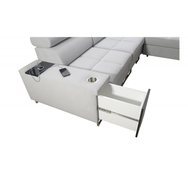 The equipment includes 7 adjustable headrests, allowing precise adjustment of back and neck support. The user also has access to 3 bedding storage compartments, an opening bar, a USB port, and an electrical socket, significantly expanding the range of use. Cushions visible in the photos are included free of charge, with no additional cost.