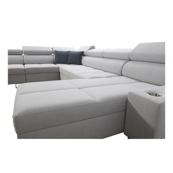 The corner sofa can be fully upholstered in any fabric from the manufacturer’s collection. Thanks to an advanced configurator, the upholstery can be tailored to individual aesthetic preferences. A wide selection of fabrics with various textures, colors, and properties allows Moren VIII to be easily integrated into the intended interior concept, offering high comfort of use and full visual customization.