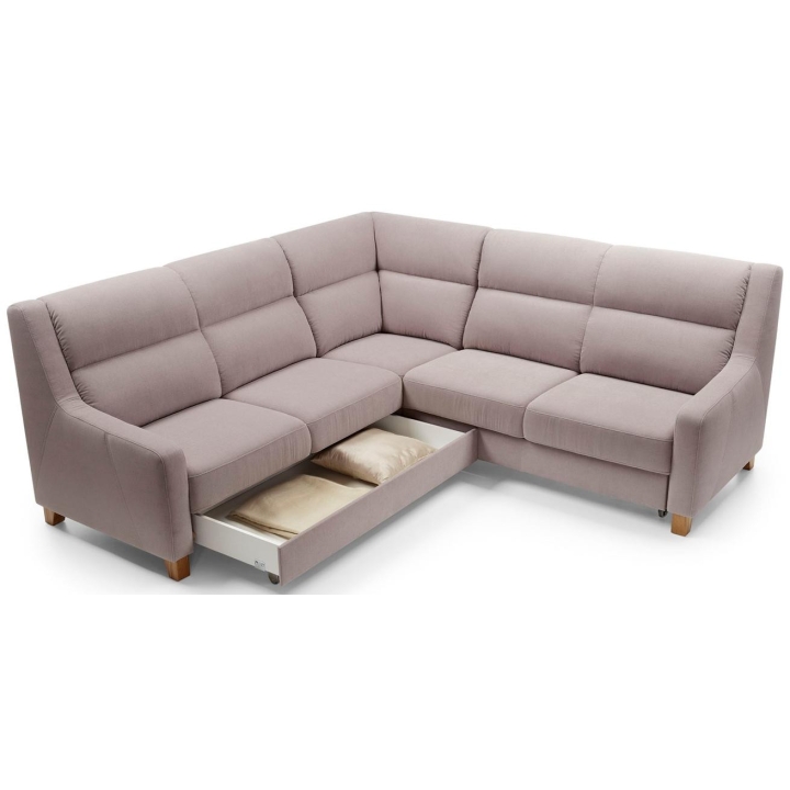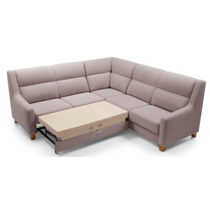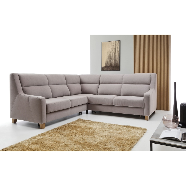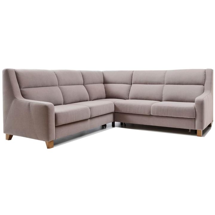 The Way corner sofa by Bydgoskie Meble is a perfect combination of modern design and extraordinary functionality. The corner sofa with a wide seat is equipped with raised backrests, whose ergonomic design means there is no need for additional headrests. The backrests are decorated with eye-catching stitching, which gives the whole an elegant character. The narrow, slightly rounded armrests perfectly harmonise with the minimalist wooden legs, which ensure the stability of the furniture. The Way corner sofa has a sleeping function and a large bedding container, allowing you to quickly metamorphose your living room into a pleasant bedroom area.