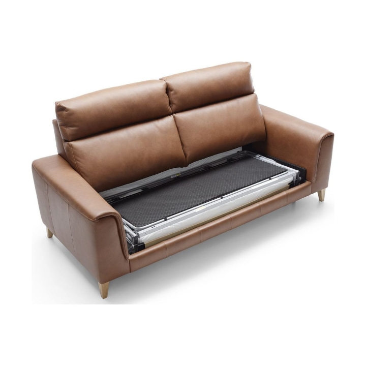 The3F Legato sofa by Bydgoskie Meble is a modern piece of furniture that will emphasise timeless style and elegance, and above all, provide a comfortable place to rest after work. The furniture offers a comfortable, wide seat filled with corrugated spring and a combination of high elastic foam and polyurethane foam. Comfort in use will also be ensured by the soft backrest and comfortable armrests. The Legato model is characterised by its simple yet elegant form, which will fit perfectly into any interior. The furniture's extraordinary asset is the wide range of colours of fabrics and leathers to choose from, thanks to which you can personalise the furniture to suit your favourite style. The sleeping function will allow you to accommodate guests overnight.