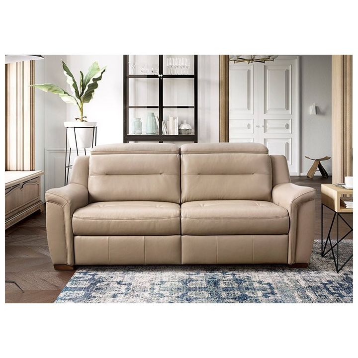 The sofa measures 214 cm in width, 93–107 cm in height, 103 cm in depth, with a seat height of 49 cm. As a three-seater model, it provides ample space for shared relaxation. An additional advantage is the wide range of fabrics and leathers, allowing the Salmo 3F sofa to be customized to individual preferences and the character of the interior.