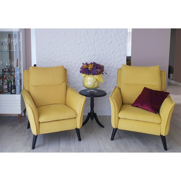Characteristics: elegant design, high slender legs, narrow armrests, high comfort of rest, high quality of workmanship, High backrest, high legs.
