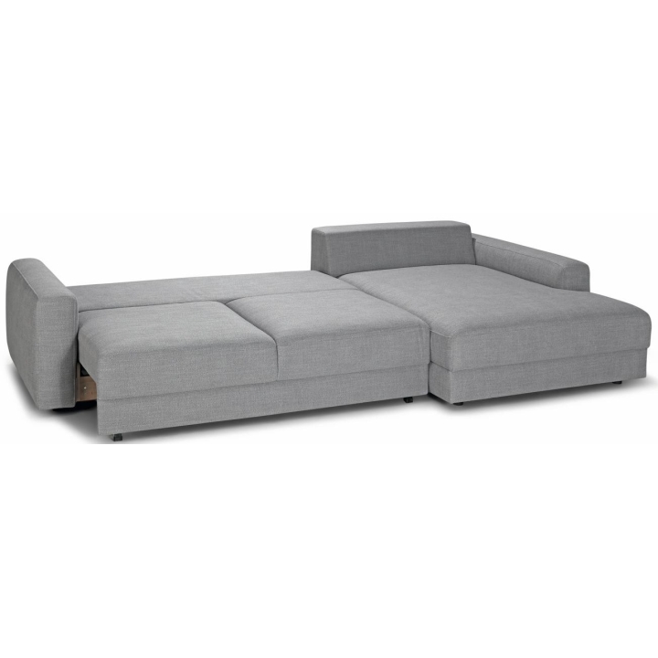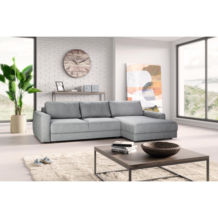 A corner sofa with a sleeping function is the perfect solution for people who particularly value comfort and functionality. The Bourbon DL corner sofa will therefore perform excellently in this role. The compact modular layout of the Bourbon corner sofa is an ideal choice for the living room. The corner sofa has a soft, comfortable seat filled with high-quality corrugated springs and foam. The loose cushions give it freedom and allow it to be arranged in any way you like. The model has wrinkles and folds that give it a soft, friendly look and are a natural feature of this collection. The corner sofa has a sleeping function that will provide a comfortable sleeping environment for you or your guests. In addition, the furniture is also equipped with a bedding container. Using the configurator, you can choose any fabric upholstery, allowing you to personalise the furniture according to your favourite style.