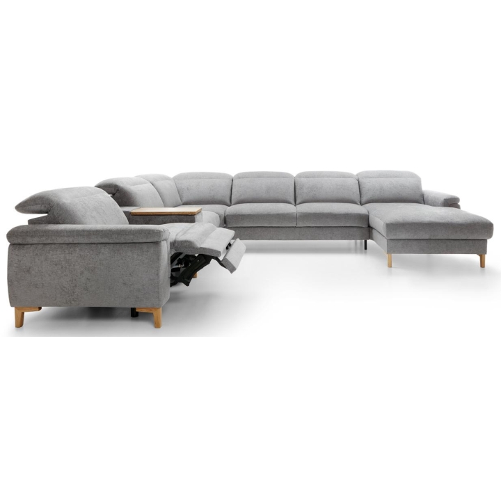 The Mia modular corner sofa by Bydgoskie Meble is designed for those who value high-quality craftsmanship and modern technical solutions. The furniture consists of two segments equipped with an electric relaxation function, allowing the seating position to be adjusted to individual needs. High wooden legs give the structure a sense of lightness while ensuring stable support.