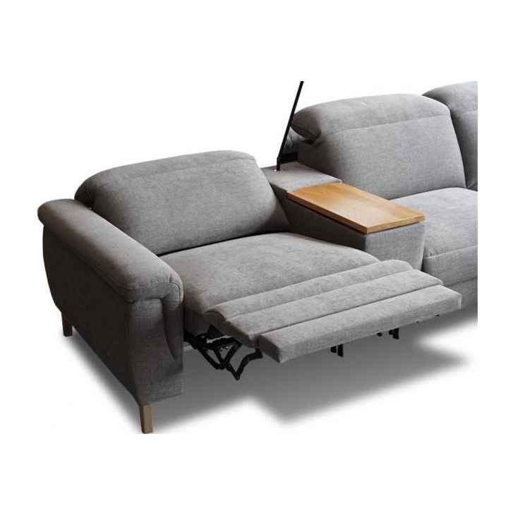 The Mia modular corner sofa is a modern piece of lounge furniture that captivates with its stylish look and functionality. A timeless design that will steal the heart of both the lover of beautiful objects and the enthusiast of modern solutions. The furniture is very comfortable and equipped with many modern functions. The corner sofa consists of two segments with an electric relaxation function, thanks to which we can relax after a hard day. Mia will not only provide effective rest during the day, but will also become a comfortable bed. The corner sofa is equipped with an Italian-type sleeping function. In addition, it also includes a spacious bedding container and adjustable headrests. An interesting and at the same time practical element of the equipment is the internal rectangular module, which serves as a shelf, but also has a lamp on a bent telescope and the possibility of charging via USB ports, wireless or V-230 plug. The entire body rests on wooden legs, which are stable and look very light and modern.