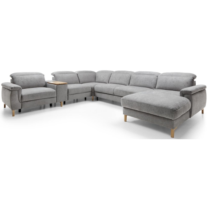 The entire structure rests on wooden legs, giving the sofa a lightweight appearance and making it easy to clean underneath. The stable base combined with its modern design makes the Mia corner sofa the centerpiece of any living space. It’s an ideal choice for those who value high-quality craftsmanship and features that promote everyday relaxation.