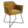 The modern Scarlet upholstered chair is a lounge piece of furniture, ideal for loft or modern style interiors. It is an ergonomic and very comfortable chair that looks great at the table. The furniture's asset are the soft armrests, on which you can comfortably rest your hands. The delicate metal legs add lightness and emphasise the modern design of the chair. Using the configurator, you can choose any fabric upholstery, allowing you to personalise the furniture according to your favourite style.