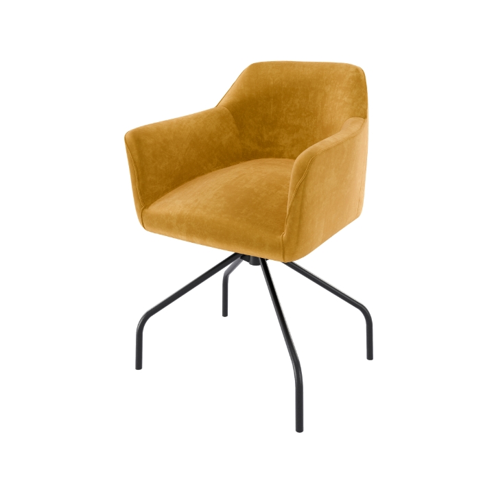 The modern Scarlet upholstered chair is a lounge piece of furniture, ideal for loft or modern style interiors. It is an ergonomic and very comfortable chair that looks great at the table. The furniture's asset are the soft armrests, on which you can comfortably rest your hands. The delicate metal legs add lightness and emphasise the modern design of the chair. Using the configurator, you can choose any fabric upholstery, allowing you to personalise the furniture according to your favourite style.