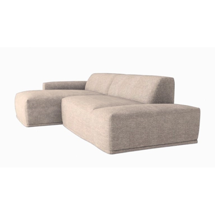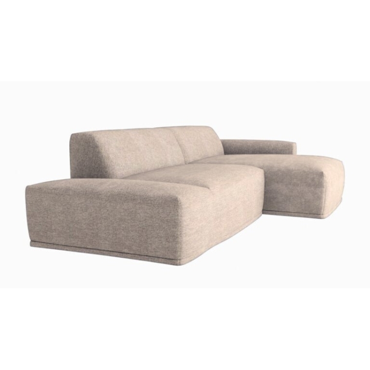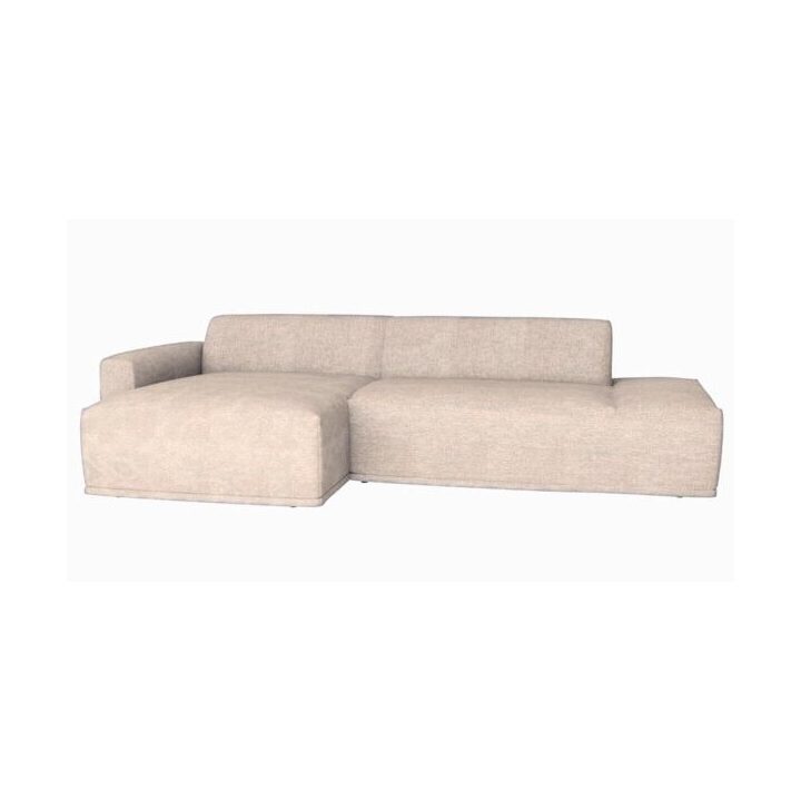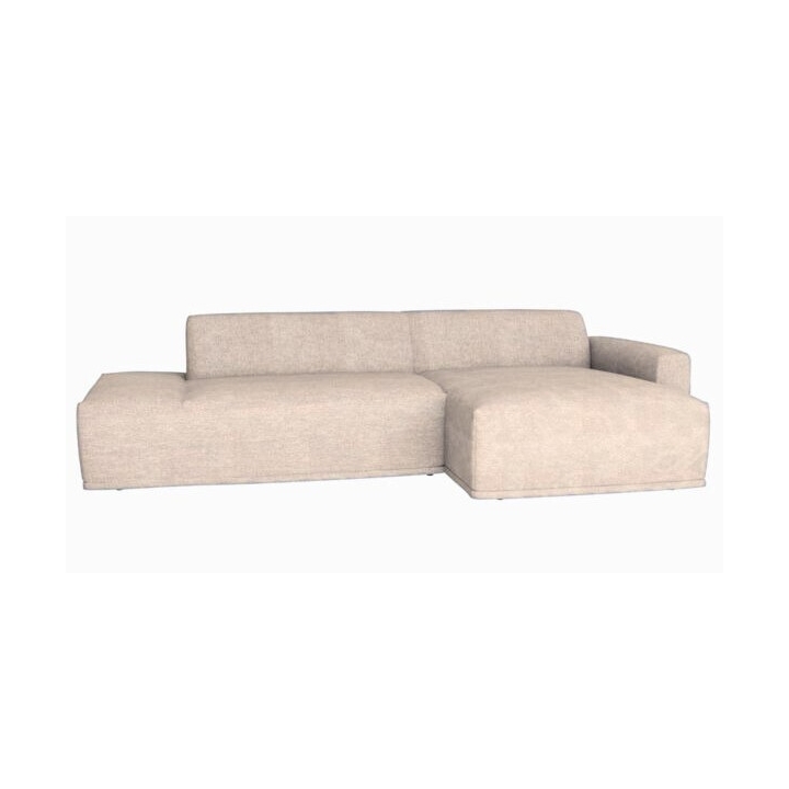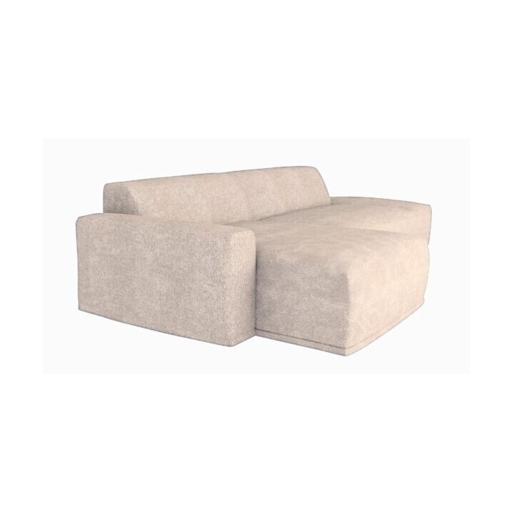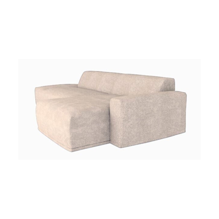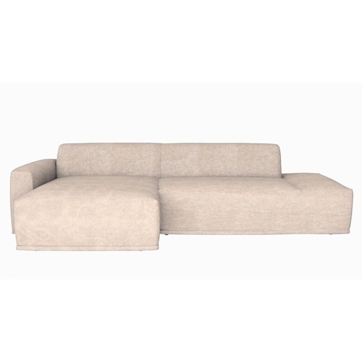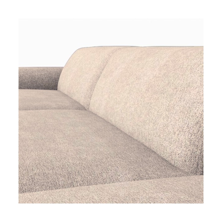 The corner sofa is available in a right-hand or left-hand configuration, enabling alignment with the room layout. It is upholstered in fabric, offering a cohesive look and a pleasant texture. The absence of a sleeping function, modularity, and bedding storage highlights its purpose as a daytime relaxation piece.