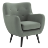 The furniture measures 91 cm in width, 102 cm in height, 83 cm in depth, with a seat height of 48 cm, ensuring comfortable support for both the back and arms. The wooden legs, available in finishes such as wenge, antique cherry, natural beech, natural oak, walnut, silver, and black, add visual lightness and make it easier to clean underneath the furniture. The high backrest provides excellent full-back support, contributing to lasting comfort during long periods of sitting.