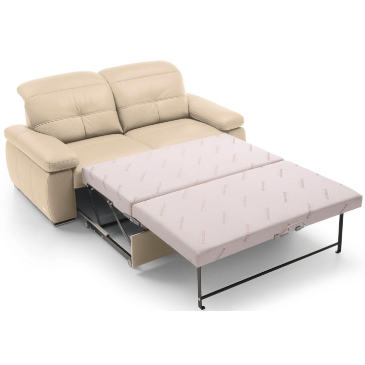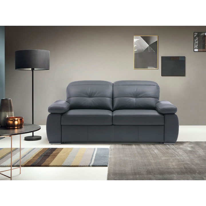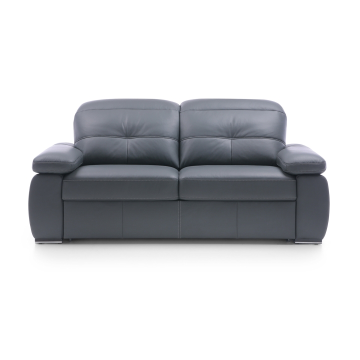 The model features adjustable headrests, allowing you to customize the backrest angle to your individual needs. This makes it comfortable to relax in both a sitting and semi-reclined position. The upholstered back allows the sofa to be placed freely in the room, not just against a wall.