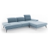 The corner sofa from Canvani's Adel collection is a combination of modern design with functional solutions that increase the comfort of use. Thanks to the seat and headrest adjustment system, we can fully personalise the furniture to our needs. Stylish metal legs and detailed workmanship subtly enhance the elegant character of the product. High-quality foam filling the seat and backrest ensure unique comfort. By combining the corner sofa with the Adel collection's hocker, we will provide ourselves with additional occasional seating, and at the same time such a composition will easily blend into our interior. Features include a modern design, adjustable headrest, and a seat depth adjustment system. In addition, the metal legs give the furniture stability and a sophisticated look. The manufacture of the furniture allows you to choose the fabric from the sampler, the seat and backrest are filled with foam and corrugated spring. The dimensions of the sofa are: width 289 cm, height 83-102 cm (with headrest), depth 183 cm. The product is delivered in self-assembly form.