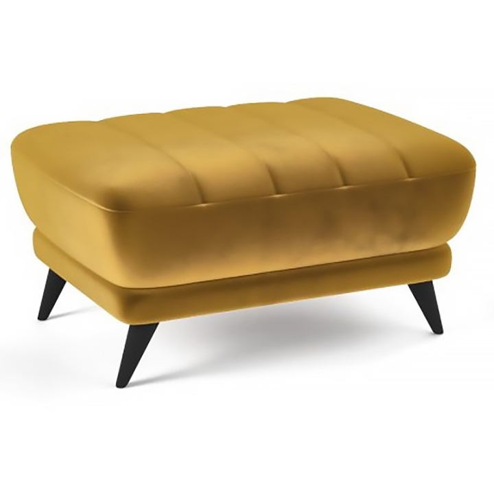 The pouffe from the Roy collection , from the manufacturer Canvani, is a great addition to retro styled interiors as well as those that are slightly contemporary. The furniture is a comfortable place to sit, as it has been filled with high quality foam and corrugated spring, which guarantees comfort during use. The pouffe can also be used as a footrest for an armchair or as a small table. The piece of furniture is fully upholstered and decorated with vertical stitching on the seat. Its lightness is added by the high metal legs, which are also a stable base for the structure.