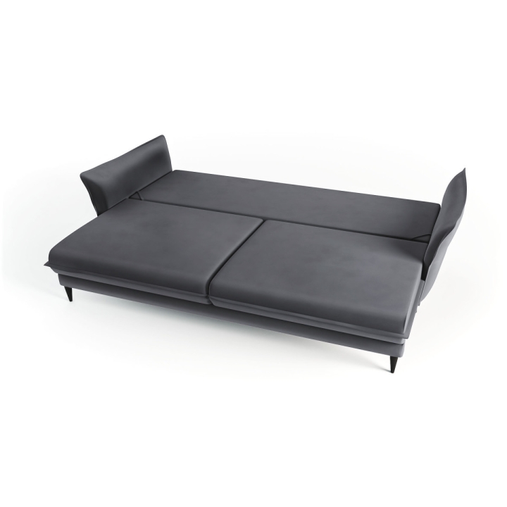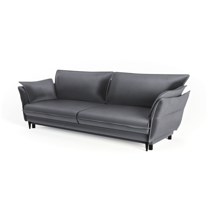 The elegant Optimus sofa will add a tasteful touch to your interior. With its exquisite retro design in a very contemporary edition, the sofa is sure to delight even the most demanding customer. The sofa will be perfect in the living room, where it will be a stylish decoration, but also a comfortable place to rest. Sleeping and storage functions further contribute to the usability values of the presented collection. Comfort is ensured by high-quality materials in the form of high elastic foam and corrugated spring. Dreaming of refined elegance in your living room with the Optimus sofa is possible!