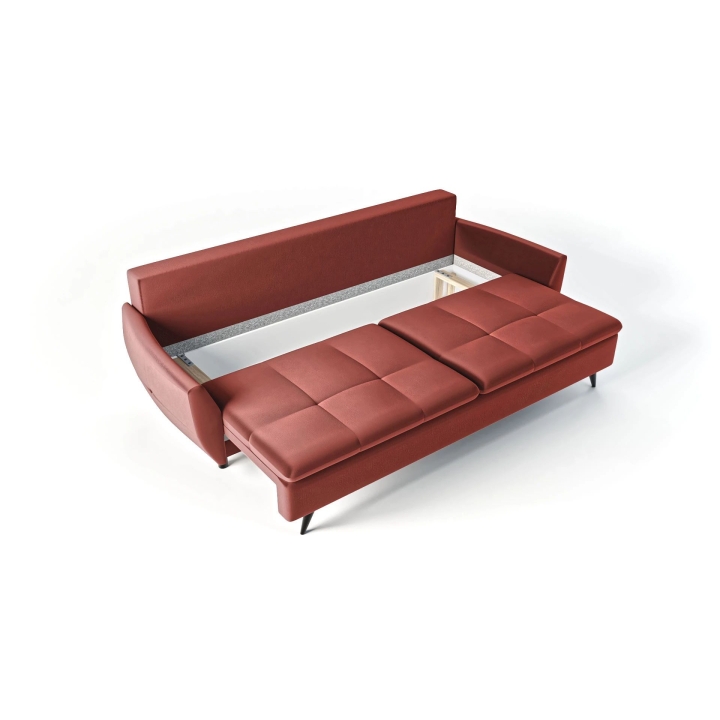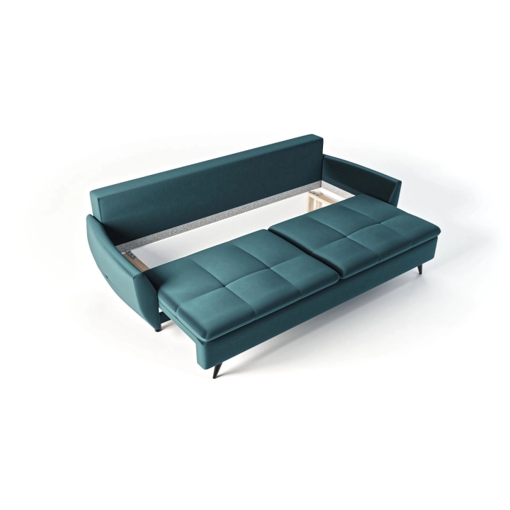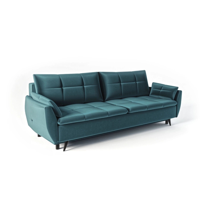 The Experia sofa, measuring 238x90x94 cm, is a functional solution for your interior. Equipped with a practical DL type sleeping function and a bedding container, it becomes the ideal choice for those looking for a piece of furniture with additional uses. The interior of the sofa is filled with high-flexible foam and a corrugated spring, providing the user with comfort and durability. The manufacturer of this product is Canvani, a company known for its high quality workmanship. The Experia sofa is a practical and modern solution for those who appreciate functionality and simplicity. It will easily meet the expectations of those looking for a piece of furniture with a sleeping function and additional bedding storage.
