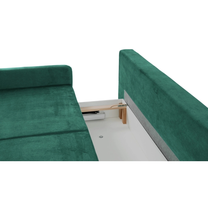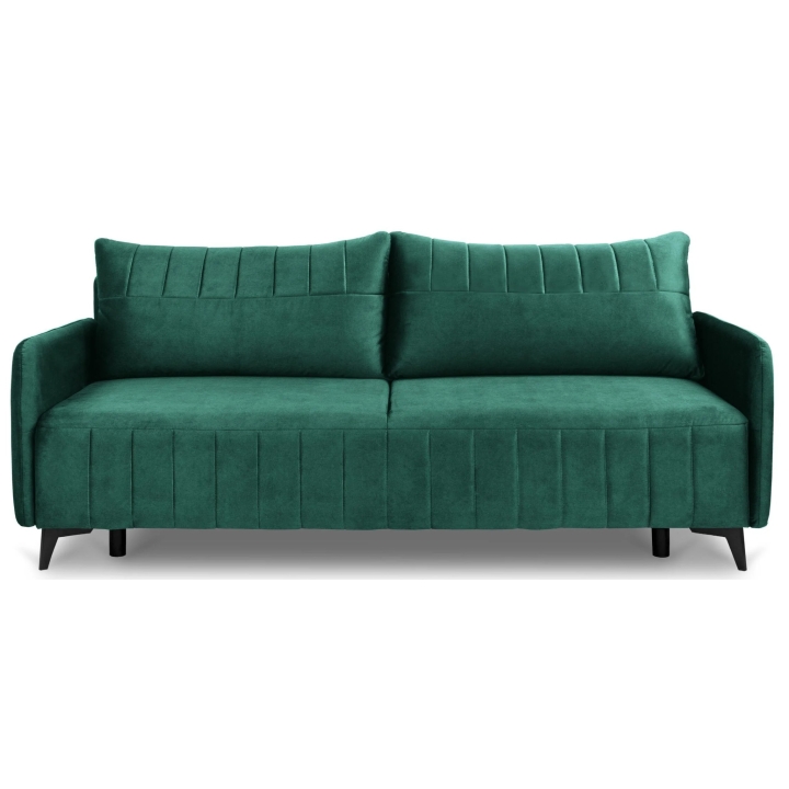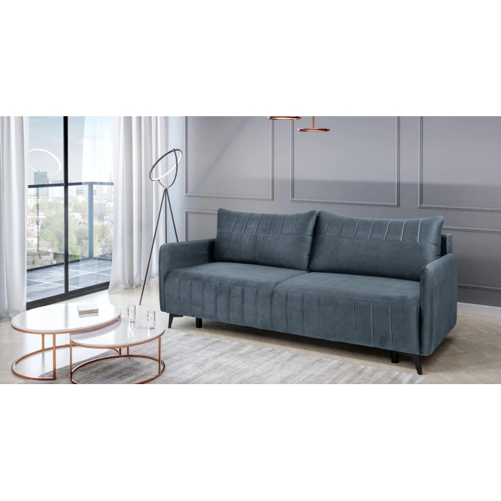 Immerse yourself in luxury with our Carla sofa, measuring 210 cm x 91 cm x 97 cm. It's not just a piece of furniture - it's a masterpiece that combines stylish design with unparalleled comfort. The DL sleeping function makes this sofa not only an elegant addition to your living room, but also a practical solution for guests or spontaneous sleepovers. In a single gesture, transform it into a comfortable 140 x 193 cm bed. An undeniable advantage of this sofa is the bedding storage compartment. Now storing extra duvets or cushions becomes not only easy, but also stylish. The filling of the seat and backrest with high-flexible foam and corrugated spring guarantees unparalleled comfort. Feel how every seat of this sofa moulds to your body, providing the perfect support and relaxation after a long day. The dimensions of the Carla sofa mean that it will fit perfectly into your living room space, giving it a unique character. With a width of 210 cm, a height of 91 cm and a depth of 97 cm, the proportions combine elegance with functionality. In conclusion, the Carla sofa is not just a piece of furniture. It is an experience. Find the harmony between design and comfort. Let yourself be carried away by luxury and quality today.