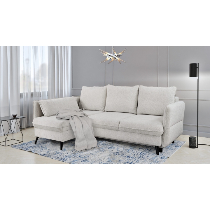 The Oslo corner sofa is an elegant and functional piece of furniture with a width of 225 cm, a height of 95 cm and a depth of 150 cm, providing a comfortable place to rest. Its unique feature is its 130x198 cm sleeping surface, making it ideal for those looking for a practical piece of furniture for sleeping. Equipped with a modern DL sleeping function, the Oslo Corner sofa offers easy and comfortable unfolding, adapting to the user's individual needs. An additional advantage of this corner sofa is the practical bedding containers for storing additional accessories. Thanks to these features, the Oslo corner sofa perfectly combines style with functionality, perfectly meeting the expectations of contemporary clients looking for aesthetic and practical solutions for their interior. The high quality of workmanship and attention to detail make this corner sofa not only a comfortable piece of furniture for everyday use, but also an attractive decorative element of any living room.