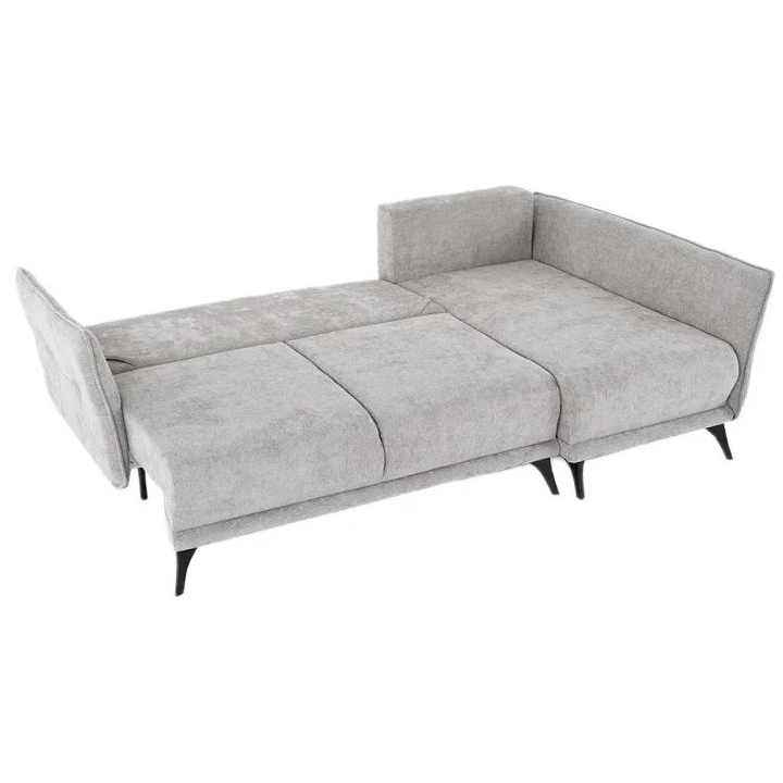 The SARENZA collection is distinguished by its chic design. The slender, curved sides with a significant slope and high legs visually elevate the piece, while the massive cushions and backrests encourage you to take a seat. Furniture from this collection will find its perfect place in designer and glamour interiors. SARENZA corner sofa offers comfortable rest for 3 people, and in the evenings it easily transforms into a full-size bed. Highly elastic foam filling and corrugated springs will ensure exceptional comfort and regenerative sleep. The corner sofa is equipped with a sleeping function (DL mechanism) for easy conversion into a bed, and built-in storage space for bedding ensures that the living room stays tidy.
