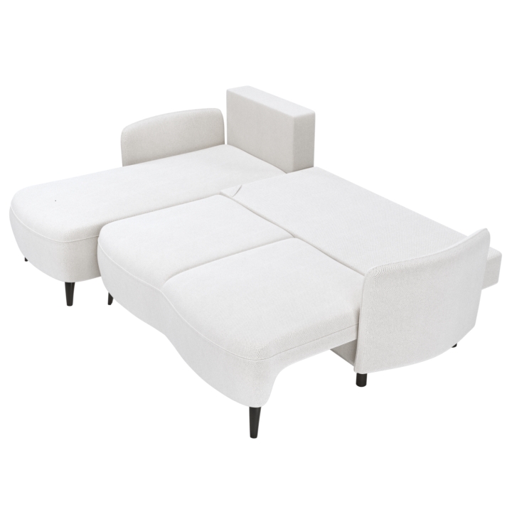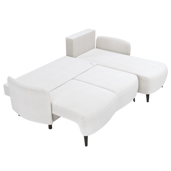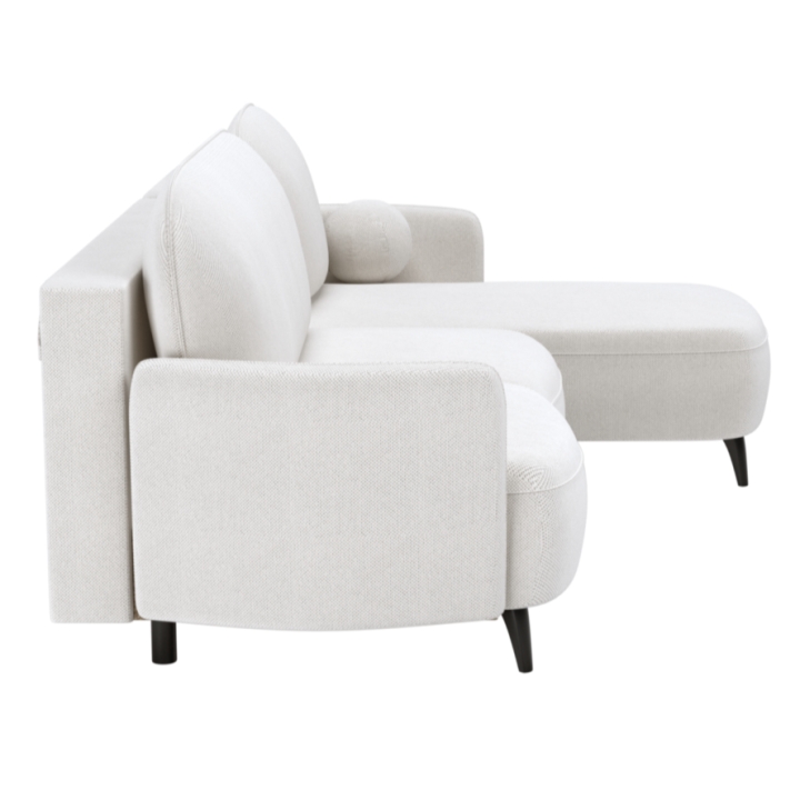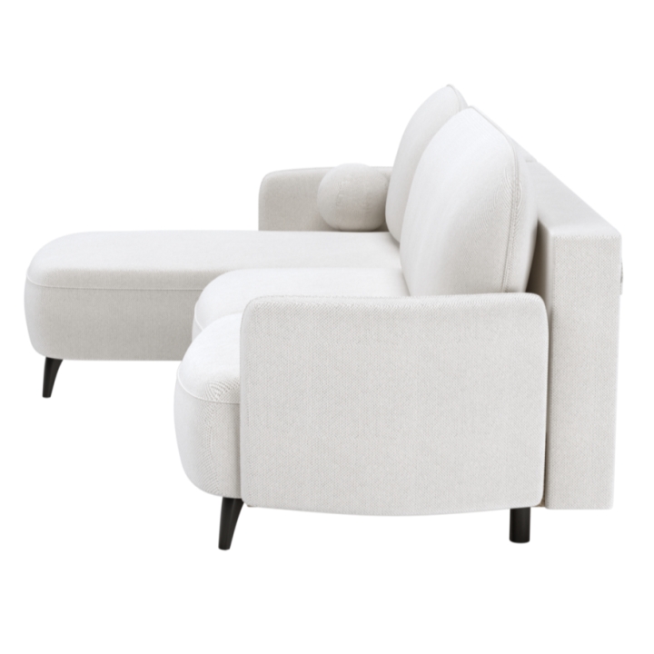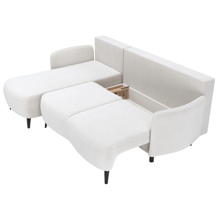 The corner sofa easily transforms into a 130 × 195 cm sleeping surface thanks to the DL system used. A swing-out spring lift makes unfolding easy, eliminating the need to move the furniture on the floor. An added bonus is the spacious storage compartment, which allows you to store bedding and other home textiles, helping to maintain order and harmony in the room.