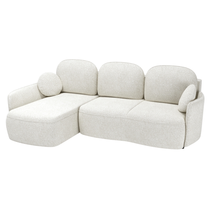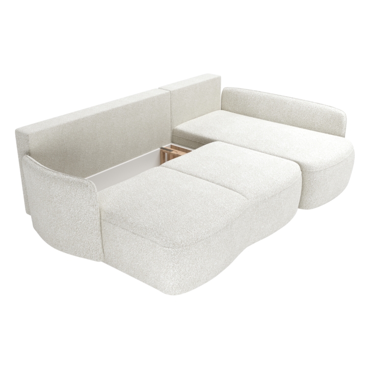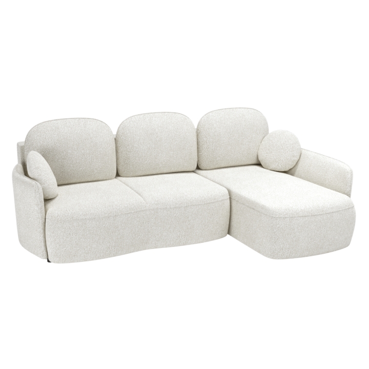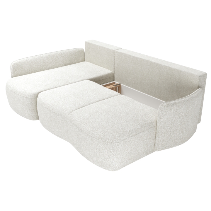 Thanks to the DL folding mechanism, converting the corner sofa into a bed is quick and convenient. A spring lift assists with opening, eliminating the need to move the furniture on the floor. The seat with corrugated springs and high-quality upholstery foam guarantees comfort and resistance to deformation. The backrest with foam filling provides adequate support for the back.