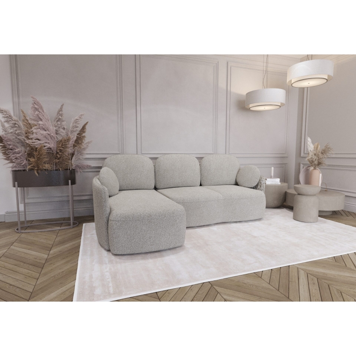 The upholstery is available in a variety of colour options, allowing you to tailor the corner sofa to your individual preferences. The upholstery material is pleasant to the touch and resistant to abrasion, ensuring an aesthetic appearance for a long time. The corner sofa is available in many colours and fabric types.