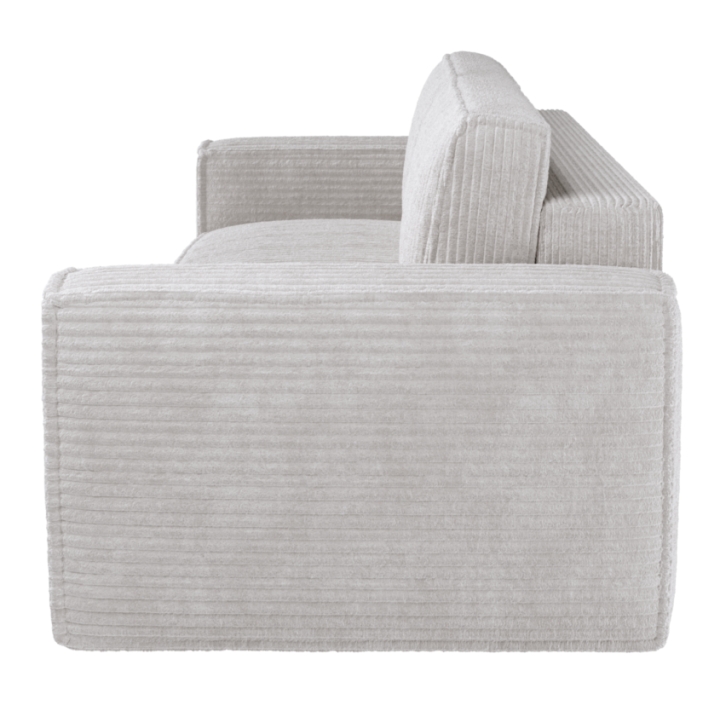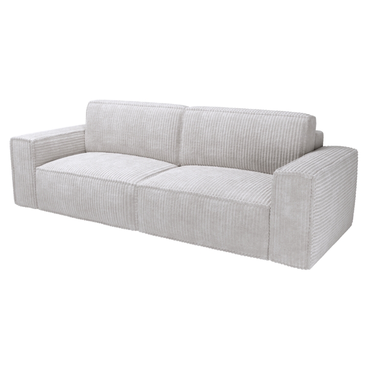 The London sofa by manufacturer Canvani is a combination of modern design and comfort that will be perfect for the living room. With a width of 251 cm, a depth of 96 cm and a height of 88 cm, it provides adequate space for everyday use. This model has low plastic legs with a height of 2.5 cm, which gives the piece stability and a minimalist look. Thanks to the upholstered finish and solid solid wood construction, the sofa looks aesthetically pleasing and fits into a variety of interior designs.