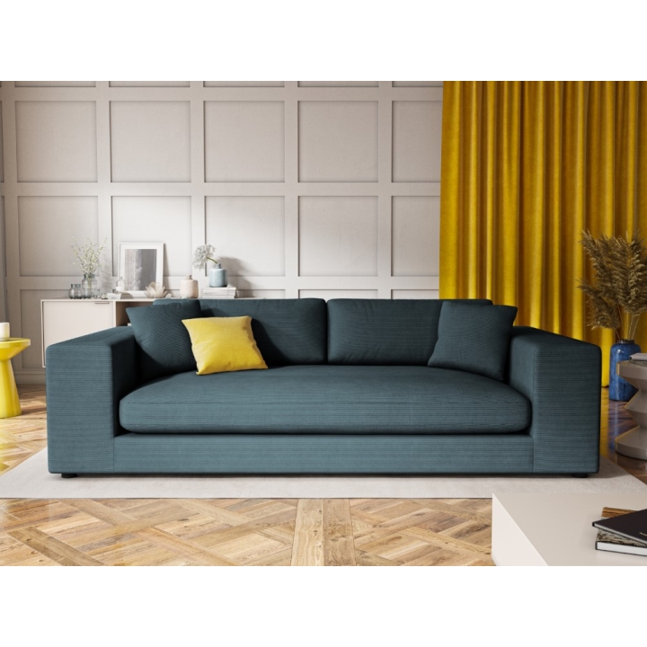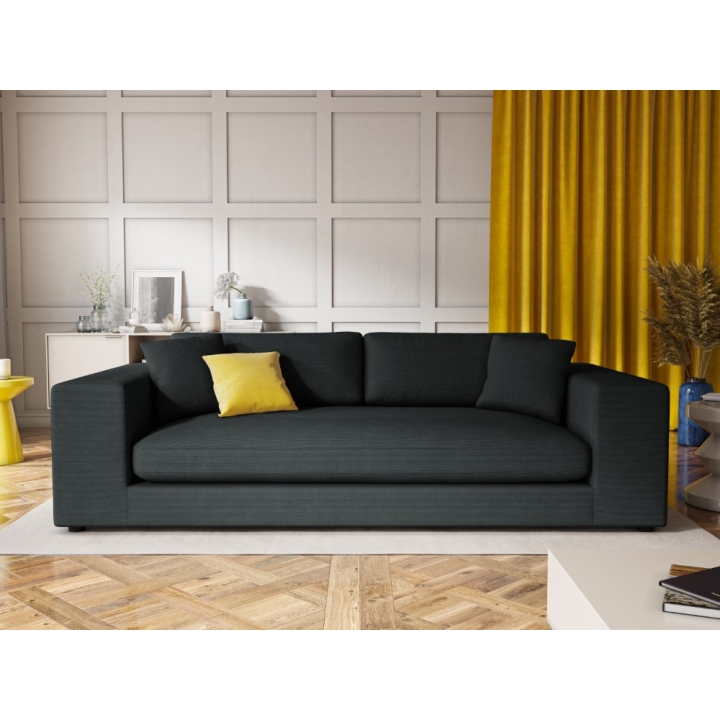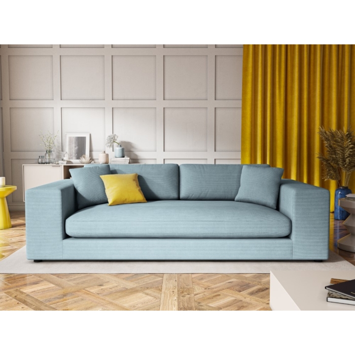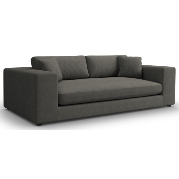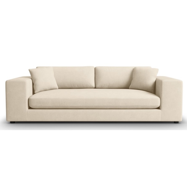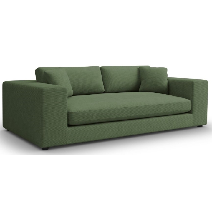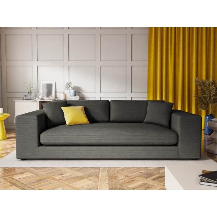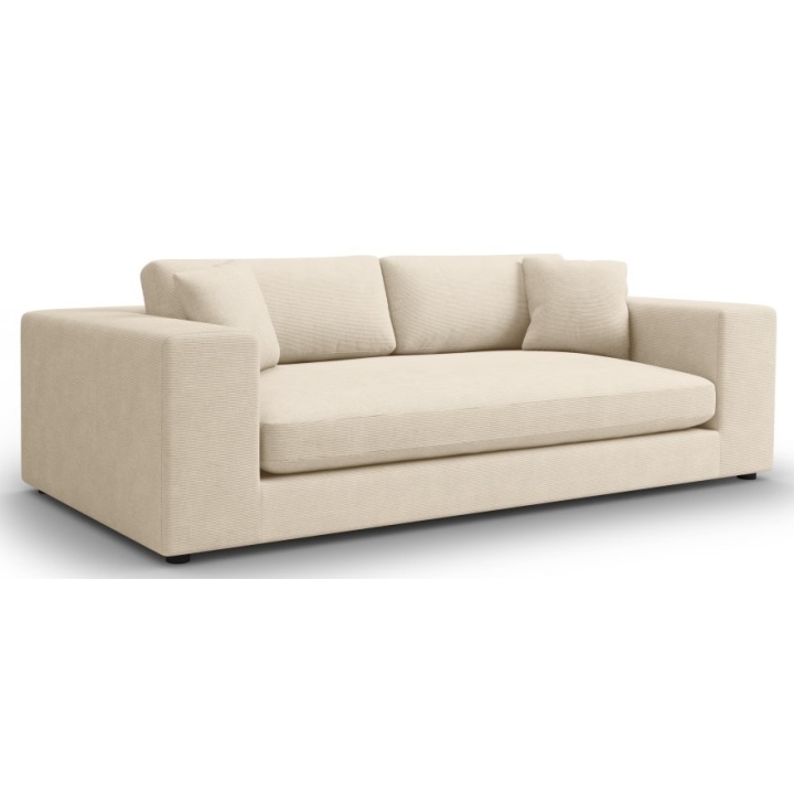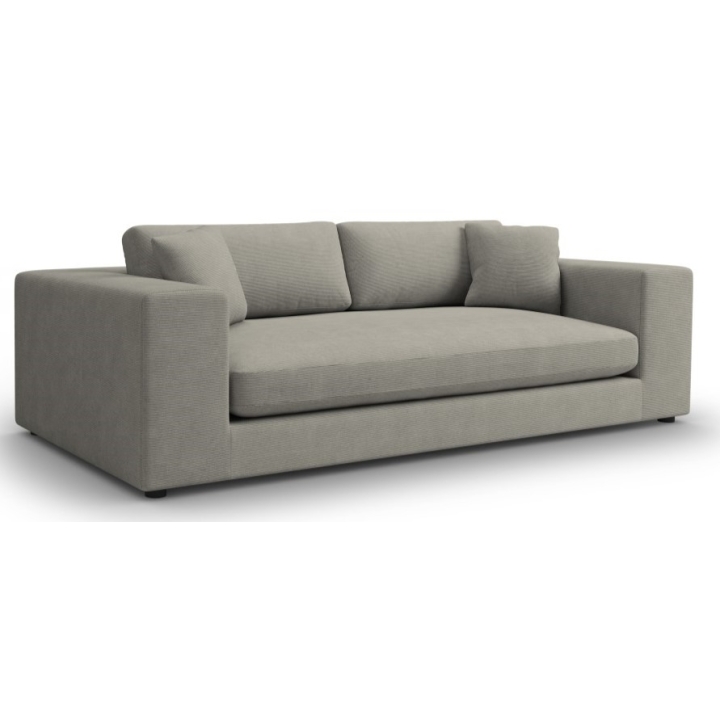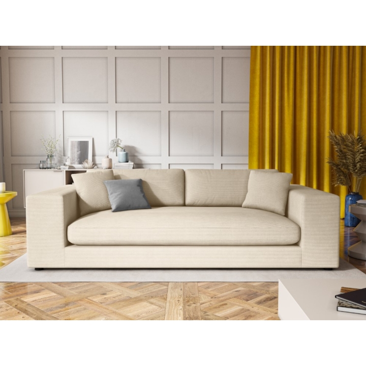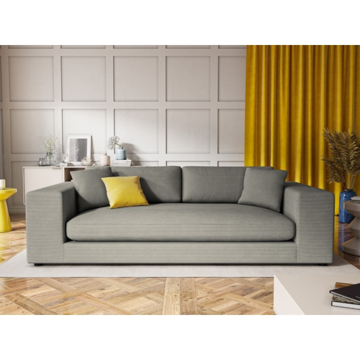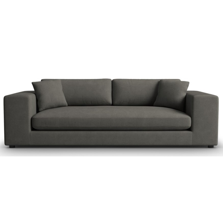The height of the armrests is 61 cm and their width is 32 cm, allowing for comfortable support for the arms. The upholstery material, made of narrow corduroy strips 3 mm wide, is pleasant to the touch and has a pleasant texture. With a fabric weight of 280 g/m² and a Martindale test result of 40,000 cycles, the sofa stands out for its resistance to everyday use. The fabric additionally has anti-stain properties.