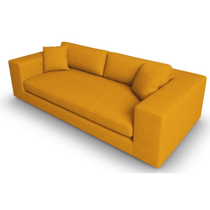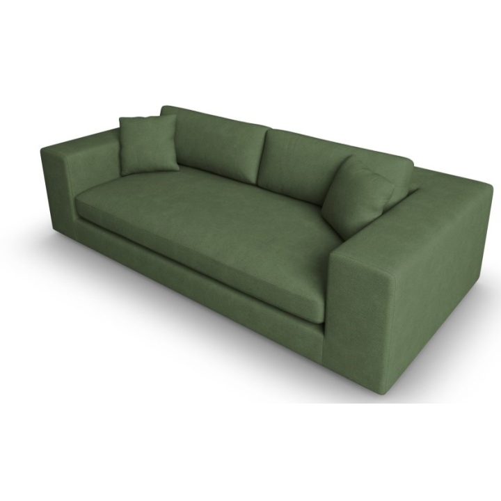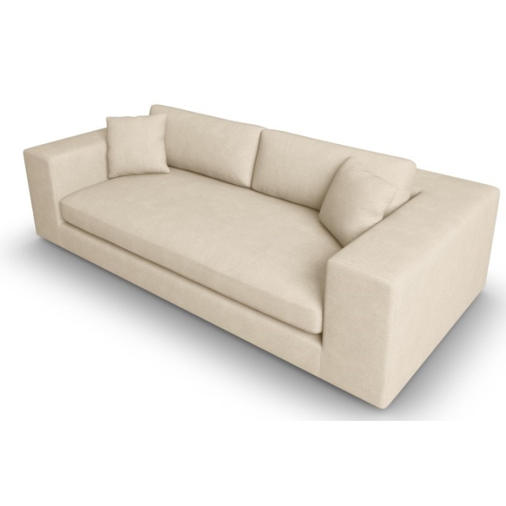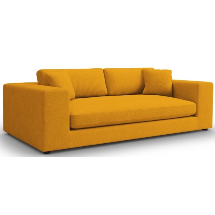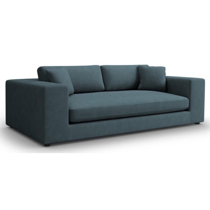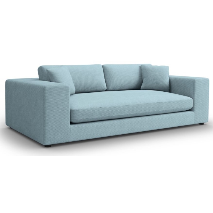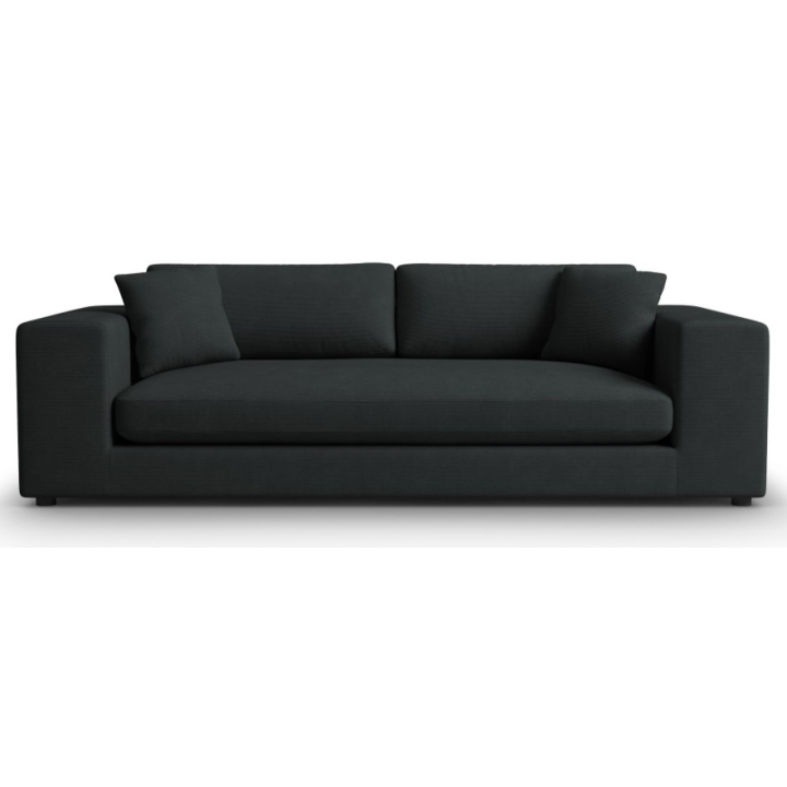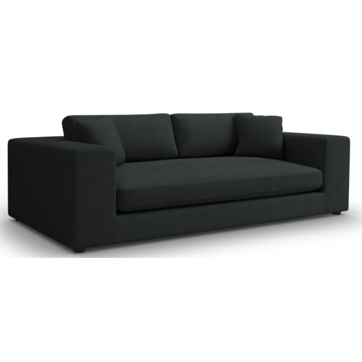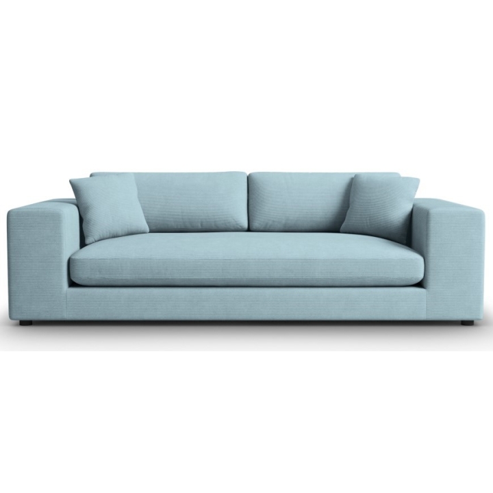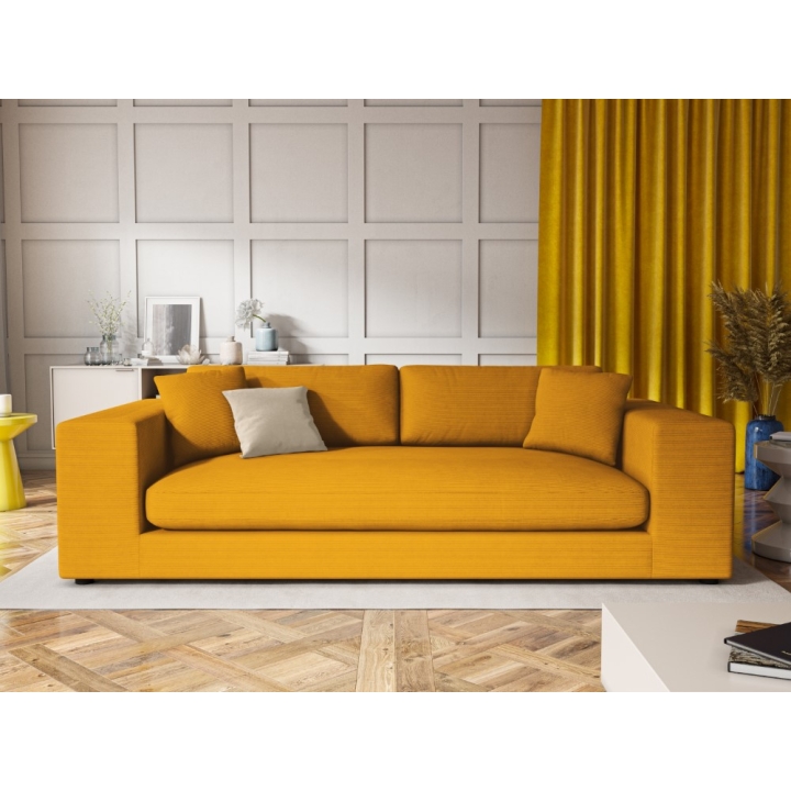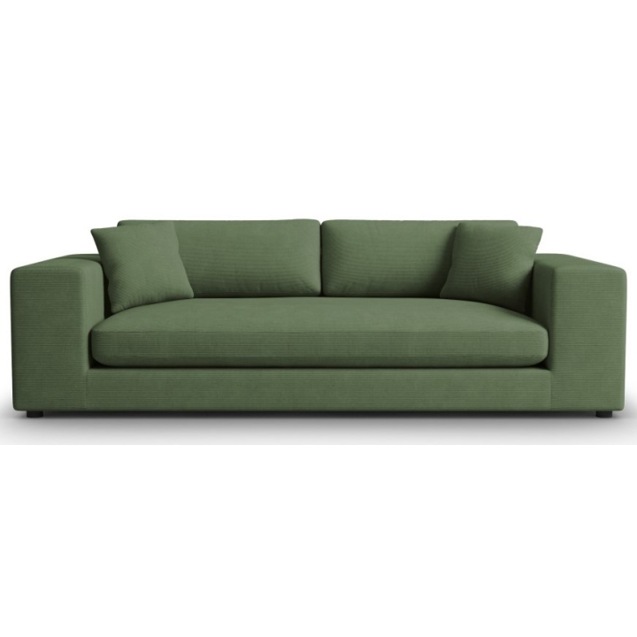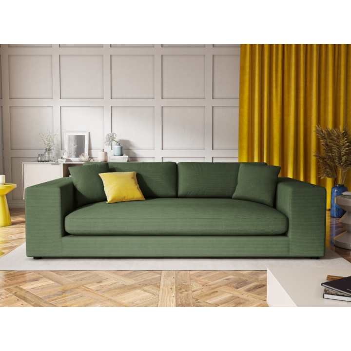 The height of the armrests is 61 cm and their width is 32 cm, allowing for comfortable support for the arms. The upholstery material, made of narrow corduroy strips 3 mm wide, is pleasant to the touch and has a pleasant texture. With a fabric weight of 280 g/m² and a Martindale test result of 40,000 cycles, the sofa stands out for its resistance to everyday use. The fabric additionally has anti-stain properties.