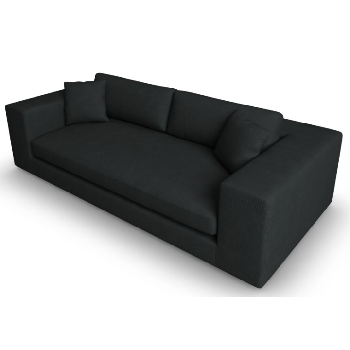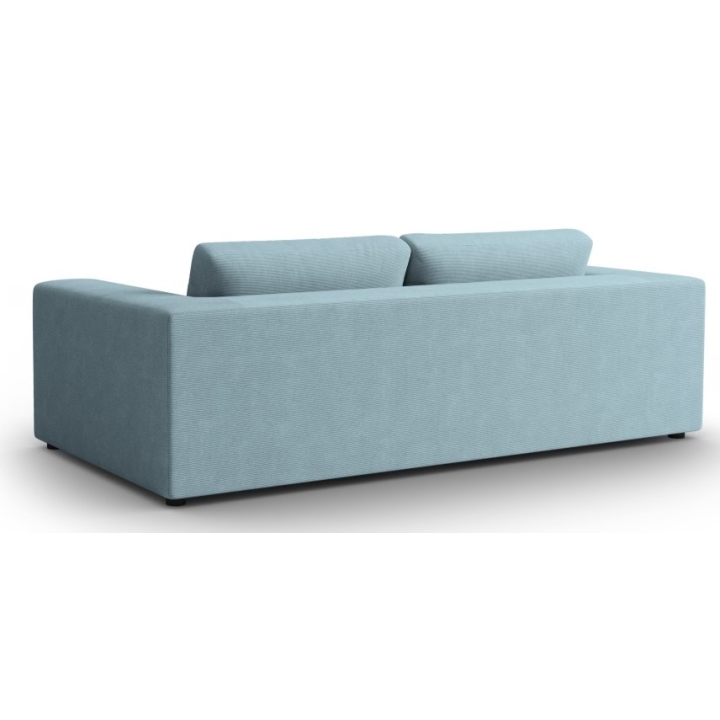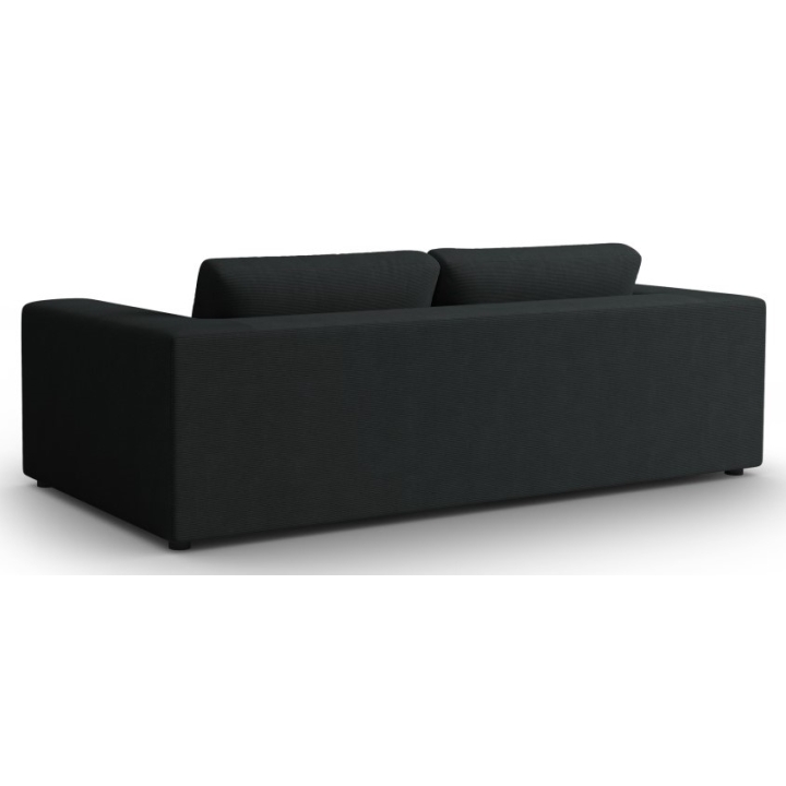 The frame of the sofa has been created from solid pine wood and other materials such as chipboard, fibreboard and plywood, ensuring its sturdiness. The legs of the sofa, in black, are 2 cm high, which adds a light character to the furniture. The entire structure is supported by springs, and polyurethane foam combined with silicone and latex provides great comfort. The sofa can accommodate a maximum load of up to 300 kg, making it suitable for heavy use in larger homes.