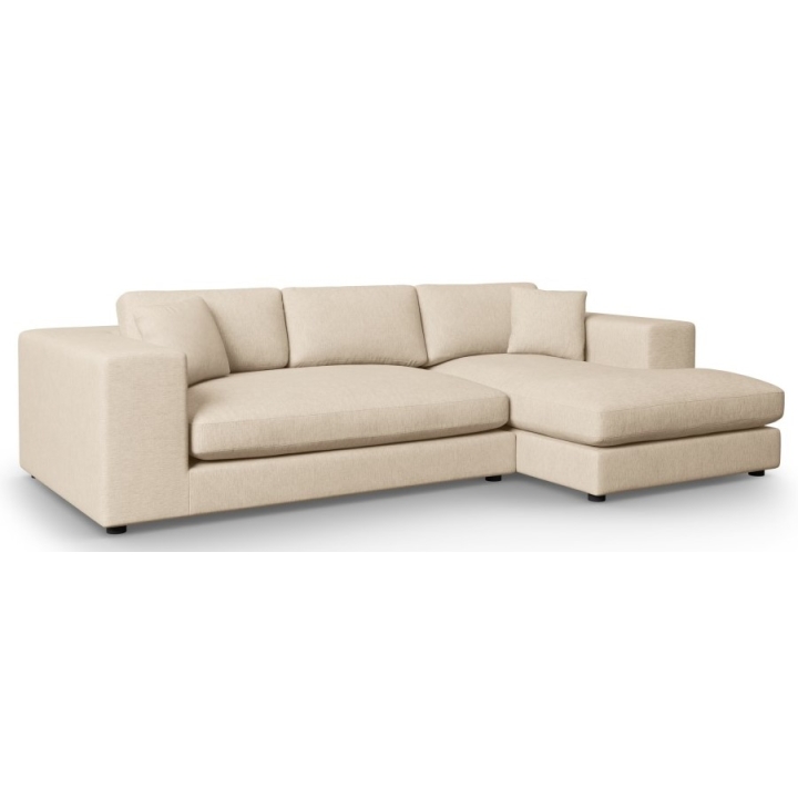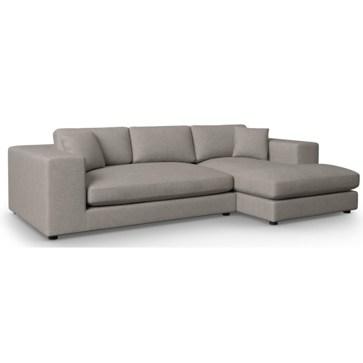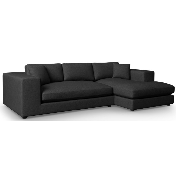 The cover of the sofa is a structured fabric, available in a wide range of colours, which has a hydrophobic Easy to Clean coating, making it easy to keep clean. Liquids do not penetrate and can be removed with a soft cloth. Thanks to its wide range of colours - from natural beige tones to deep blacks - it is easy to adapt to different spaces, whatever their character. The multicoloured fabric with its visible interlacing of threads is at the same time very durable - a high abrasion resistance test of 90000 in the Martindale test. Fabrics