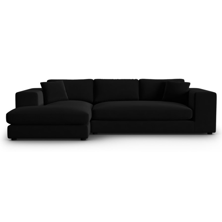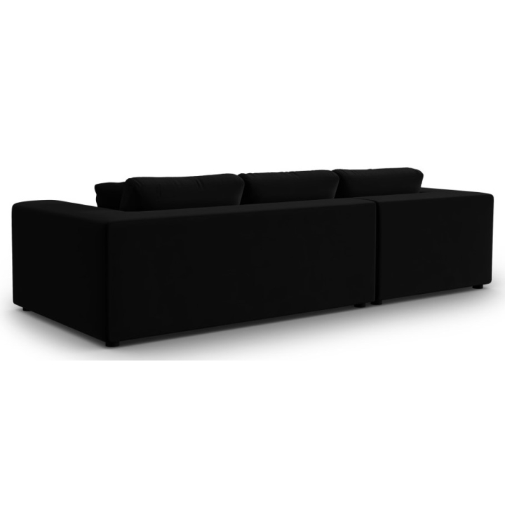 Made of solid pine wood and plywood, the corner sofa is sturdy and stable. The 2 cm high black legs, on the other hand, emphasise the minimalist design and also provide sufficient stability. It is worth noting that the product is available in a variety of colour variants, including light, natural, as well as dark and distinctive colours , so that it can be tailored to individual preferences. In addition, it is possible to choose between a left- and right-sided version, which gives additional flexibility in space arrangement.