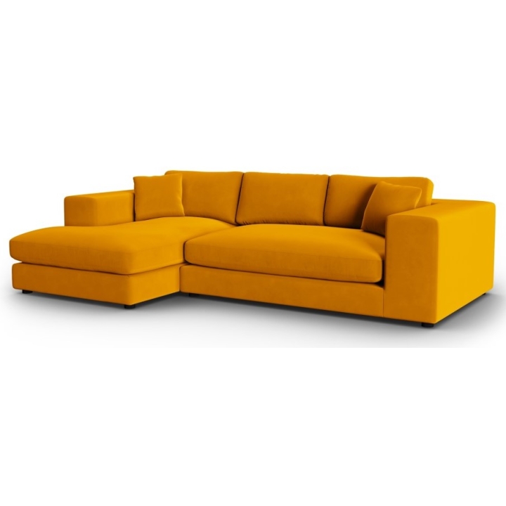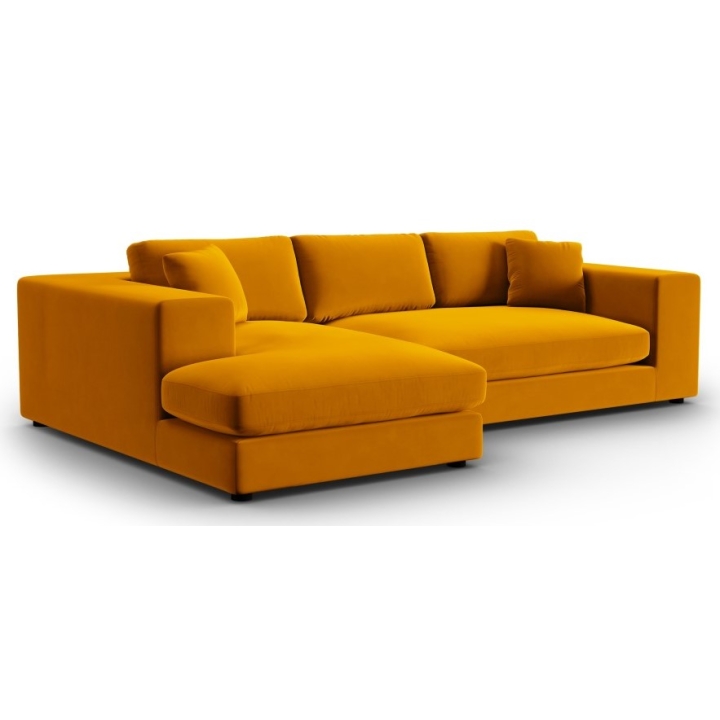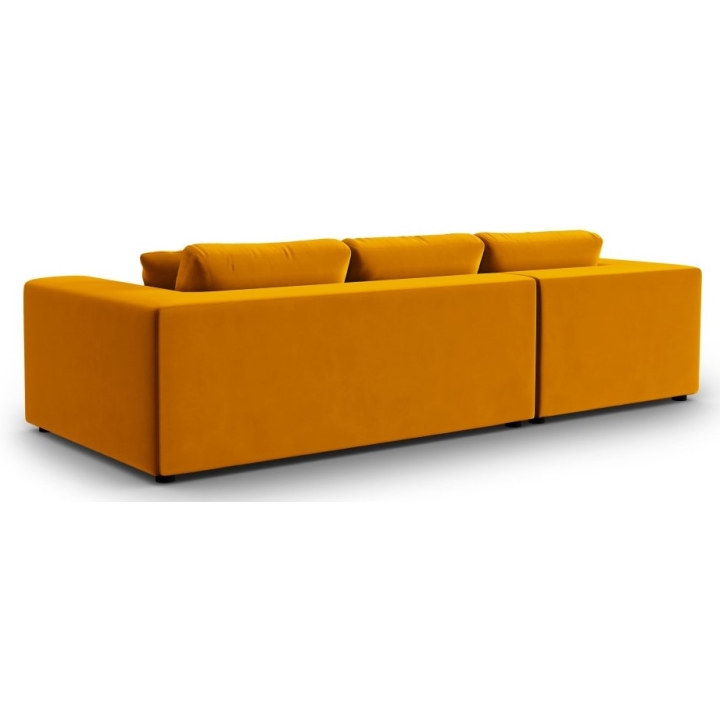 Made of solid pine wood and plywood, the corner sofa is sturdy and stable. The 2 cm high black legs, on the other hand, emphasise the minimalist design and also provide sufficient stability. It is worth noting that the product is available in a variety of colour variants, including light, natural, as well as dark and distinctive colours , so that it can be tailored to individual preferences. In addition, it is possible to choose between a left- and right-sided version, which gives additional flexibility in space arrangement.
