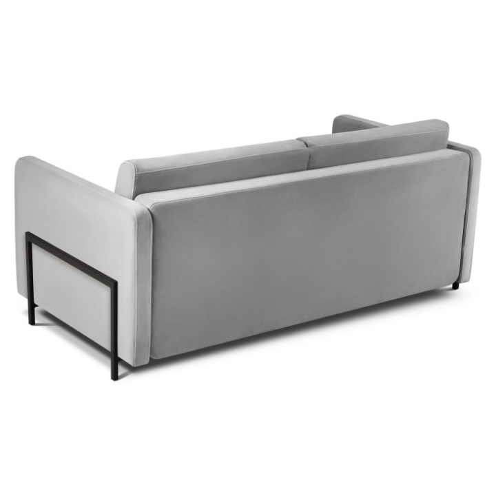 The sofa is distinguished by its velvet fabric available in a wide range of colours. The fabric is extremely resistant to abrasion (Martindale test: 100,000) and protected by Liquid Blocked technology, which prevents liquids from penetrating the fabric. The black metal legs with a height of 10 cm give the furniture a modern, light look, and the overall dimensions of 182x102x80 cm make the sofa fit well in a variety of interior settings.