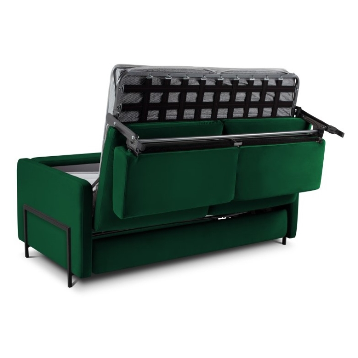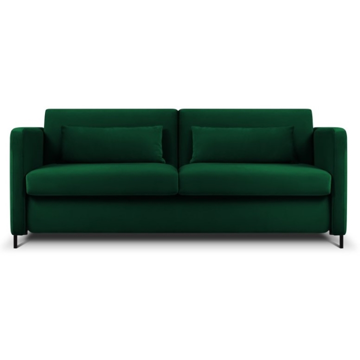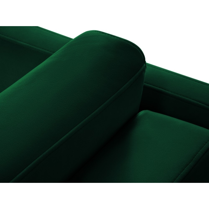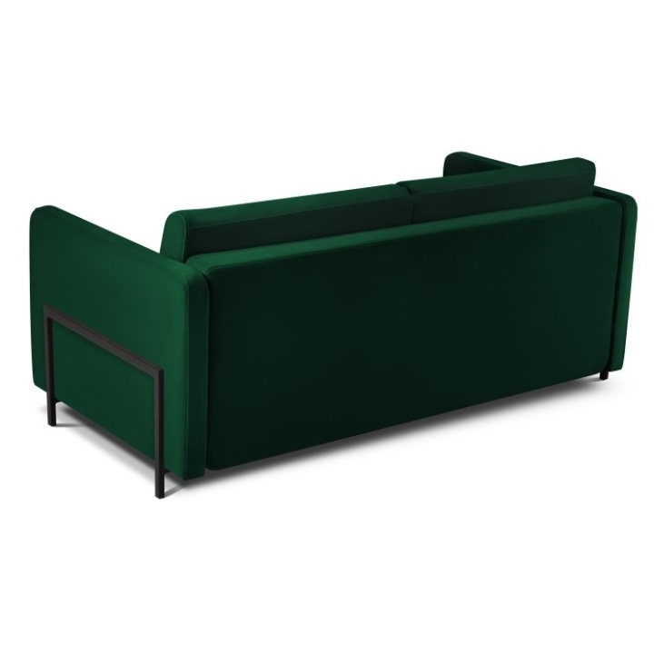 The sofa is distinguished by its velvet fabric available in a wide range of colours. The fabric is extremely resistant to abrasion (Martindale test: 100,000) and protected by Liquid Blocked technology, which prevents liquids from penetrating the fabric. The black metal legs with a height of 10 cm give the furniture a modern, light look, and the overall dimensions of 182x102x80 cm make the sofa fit well in a variety of interior settings.