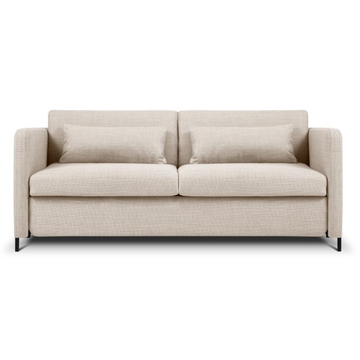 The Yanis sofa has been designed with attention to detail, which is emphasised by the 10 cm high black metal legs that give it a modern character. The furniture's dimensions are 182x102x80 cm, making it an excellent choice for both larger and smaller spaces. The seat depth is 65 cm and the height is 46 cm, ensuring comfortable use. The sofa combines style and comfort, offering solutions such as the ability to easily clean the fabric with a soft brush and mild detergents.